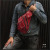 手ぶら感覚、ハンドフリーなので自転車やバイクなど乗る方におすすめアイテムです。前掛け、後ろ掛けどちらでもOKです! スリムなボディバッグで体にフィットし使いやすいです。革職人により1つ1つ手作りで作られています。丈夫で長く使え、一つあれば重宝すること間違いなしです。スタッズがアクセントになっています! シットリした柔らかい肌触りで、光沢のある牛革を使用しています。天然素材である牛革の色ムラやシワなどをそのまま生かした、本革の良さを実感できる味わいのあるアンティーク仕上げのレザーです。 フロントポケットはマグネット式で、スマホやイヤホンなど細々した小物の収納に最適です。 トップ部分のポケットはスマホやたばこなどサッと取り出したいものを入れるのに最適です。 バッグ上のDリングは壁掛けとしてフックに掛けたり、キーホルダーとして使えます。 メインルームはジッパー付きの二層で物を仕分けして入れられます。いつも持ち歩く日常品がすっきり収納でき、ちょっとした外出ならコレ1つでOKです。 バッグ裏側にもジッパー付きポケットが付いています。隠しポケットとして貴重品入れに最適です。 ショルダーベルトは左右掛どちらでもOKです。ストラップの長さの調整も可能です。 |