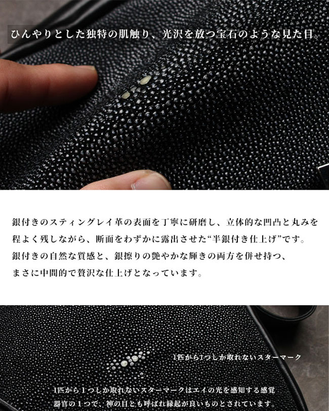 | 製品名 | スティングレイ/エイ革 ボディバッグ 斜め掛けバッグ ガルーシャ スリングバッグ ショルダーバッグ 斜め掛け ブラック/黒 本革 |