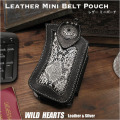 ベルトに装着タイプのベルトミニポーチです。良質のレザーを使用しました。柔らかい肌触りで、丈夫で長く使えます。パイソン柄を施しアクセントにコンチョとスタッズをあしらっています。スマホ/iPhone/タバコ/電子タバコなどのケースに最適です。ハンドフリーで、フック(ナスカン)によりベルトループやバッグなどに取り付けて使うこともできます。