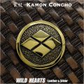 素材は真鍮で直径3.5cmで存在感のある大きさです。 ゴールドに輝く真鍮独特の色合いが日本の家紋に相性抜群です。 コンチョはネジ式なので、ドライバーで簡単に交換ができます。