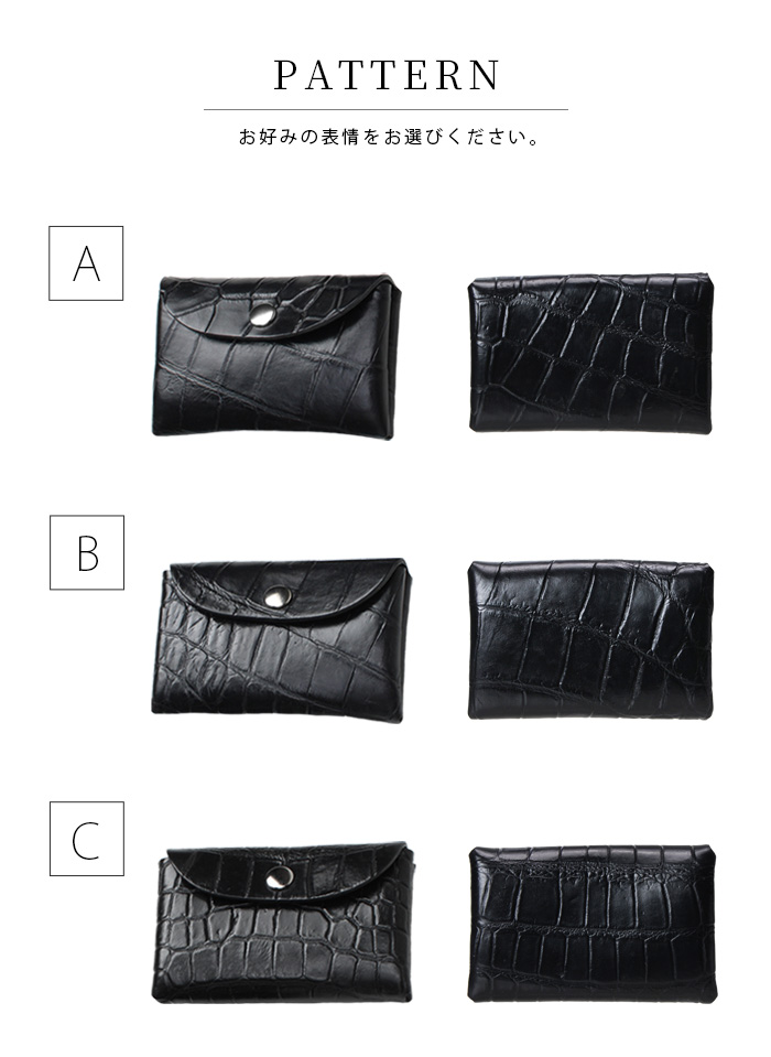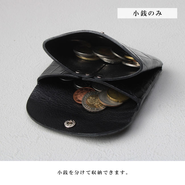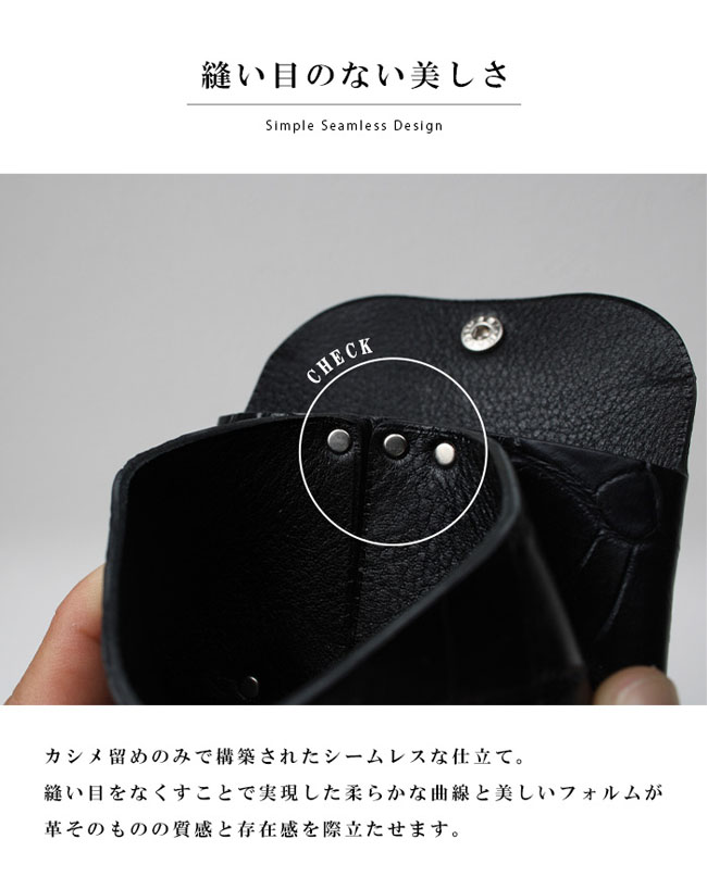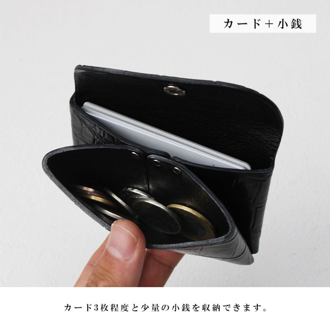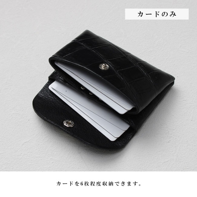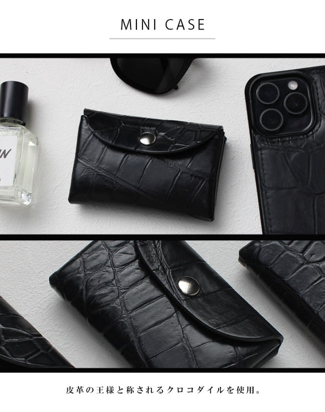 ※入荷時期により、細部の仕様が写真と若干異なる場合がございます。 ※新品ですが、革製品ですので、天然素材としてのシワ、キズ、色ムラ、又製作工程時の若干の細かいキズなどがある場合があります。 ※お使いのモニター設定、お部屋の照明等により実際の商品と色味が異なる場合がございます。あらかじめ御了承下さい。 ※この商品はポスト投函になります。日時指定はお受けできません。ご了承ください。 ■ 送料無料条件 ■ クリックポスト(日本郵便)の発送に限ります。 クリックポストでの代引き発送・配達日時指定はお受けできません。 ⇈ facebookにて新着・再入荷情報やその他お得情報をいち早く掲載! ⇈ ⇈ We post the information of New Arrival,Restock and the other info on facebook page! ⇈ ■ 商品説明クロコダイルと姫路レザーの味わいを融合させた、贅沢なミニケース。外装には一枚革の高級クロコダイルを、内装には植物タンニンなめしの姫路産オイルシュリンクレザーを採用しました。 コンパクトながらも実用的な設計で、コインケースやカードケース、小物入れなど多用途に活躍。 2つのポケットと広めの開口部により使いやすさも抜群です。手のひらサイズで持ち運びやすく、ポケットや小ぶりのバッグにもすっきり収まります。 ■ 商品仕様