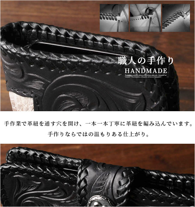 革職人により1つ1つ手彫であしらわれたゴシックテイストのカービングにヴィンテージ加工があしらわれています。 中央のくり抜き部分はクロコダイル(カイマン)となっております。 ワニ革とカービングレザーの組み合わせが最高です。 iPhone PlusやMaxサイズにジャストフィットです。iPhone11/XR/17など機種によっては装着の場合にiPhoneの周囲に1cm~1.5cmほどの隙間ができます。 その点のご理解をお願いします。 ※機種選択のお間違えがないよう、ご注文前にお確かめ下さい。(表示されない機種には対応いたしておりません。) ※使用のワニ革はタイ政府公認のカイマンを使用しています。 ※全てハンドメイドで制作してますので、革職人によって仕上がりの風合いが若干画像と異なる場合がございます。ご了承ください。 |
