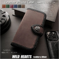 イタリアの伝統製革技法に姫路の匠の技を重ねた革、姫路のサッビアを使った手帳型iPhoneケースです。 革職人による完全手作業で作り上げられています。 ホック留め部分にコンチョを付けました。コンチョのモチーフは5種類の中からお選びください。サイドにはハトメをつけています。