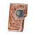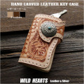 花柄とメッシュ/バスケット柄カービングをあしらった本革キーケースです。手彫りならではの立体感あるカービングが最高です。その上からアンティーク加工をあしらっています。 色はナチュラル、ダークブラウン、ブラックの中からお選びください。 6つのキーフックに加え、カードや紙幣、免許証などをスマートに収められるカードケースを装備。機能性とデザイン性を兼ね備えています。 ホック留め部分にコンチョを付けました。コンチョのモチーフは9種類の中からお選びください。 | |||||||
