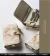パイソン(アルビノ種)を使用した財布機能付きキーケースです。ダイヤモンドパイソン独特の斑紋や鱗模様の美しさが最高です。 マット仕上げでウロコがより引き立ち、ソフトで手に馴染むしっとりとした感触です。 革自体は薄いのですがとても丈夫な革で鱗もしっかりしています。 ちょっとした外出時に必要なカードなどを鍵と一緒に収納できます。L字ファスナーのコインポケットには少量の小銭が入ります。4連キーフックと下部のキーリングにそれぞれ鍵を装着出来ます。 留め具のスナップのキャップ部分はお好みのモチーフをお選び下さい。 ※天然素材であるパイソン革を使用している為、使用部分は同じですがウロコの模様は写真と多少の違いがあります。又天然素材として避けることのできない多少のキズや色むらなどがあります。予めご了承ください。 |
