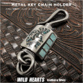 合金製のキーホルダー/キーフックです。人気のインディアンモチーフのココペリが型取られその中にターコイズがインレイされています。粉砕状のターコイズが樹脂で固められています。ターコイズ(天然素材)を使用していますので色合いが写真と若干違う場合がございます。リング部分にウォレットチェーンや鍵などを付けることができます。 |
