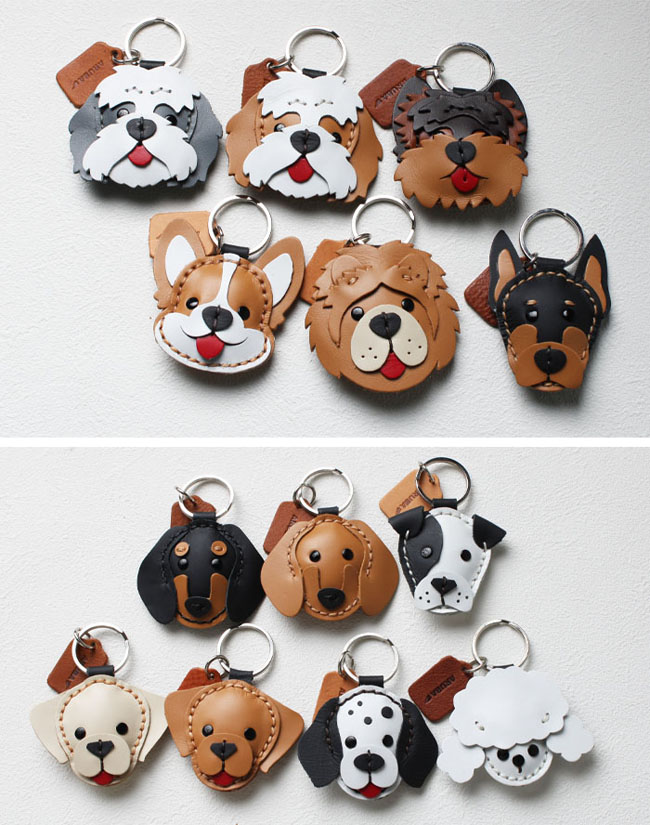 バッグや小物を華やかに彩る、37種類の犬型キーホルダー(本革)です。バッグや財布の製作過程で余った素材を活用した、環境にやさしいエコフレンドリーデザインです。 柴犬、 トイプードル、ハスキー、シュナウザー、チワワ、フレンチブルドッグ、ビーグル、ゴールデンレトリバー、ダックスフンド、シーズー、プードルなど、全24犬種の中からお好きなデザインをお選びいただけます。 鍵やバッグのチャームとしてはもちろん、ペット用バッグのアクセントにもぴったり。ご家族やご友人へのプレゼントにもおすすめのアイテムです。