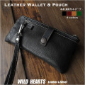 本革にこだわったスマホケース付きポーチ/財布です。大半のスマホに対応サイズで、サッと取り出せ便利です。裏面には小物などを入れるのに便利なミニポケットと取り外し可能なハンドストラップ付きです。 ミニポーチ内部に財布機能が付いています。メインルームはお札、カード、通帳やパスポートなど入れることが可能です。ジッパーがL字に大きく開き使いやすいです。フロントポケット部分のスナップキャップはお好みのモチーフをお選びください。