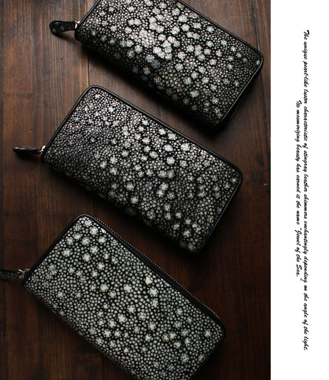 | 製品名 | スティングレイ/エイ革 スタースティングレイ ガルーシャ 海の宝石 梅華皮 梅花皮 星形模様 長財布 ラウンドファスナー 革財布 ウォレット |