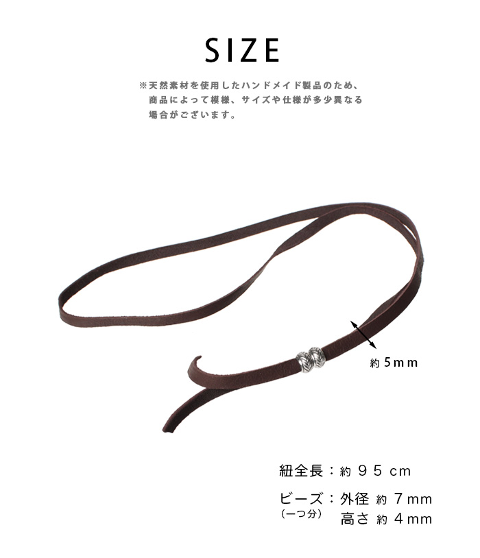 全長(約)95cm ビーズにて調整可能です。 革紐の幅 約5mm |