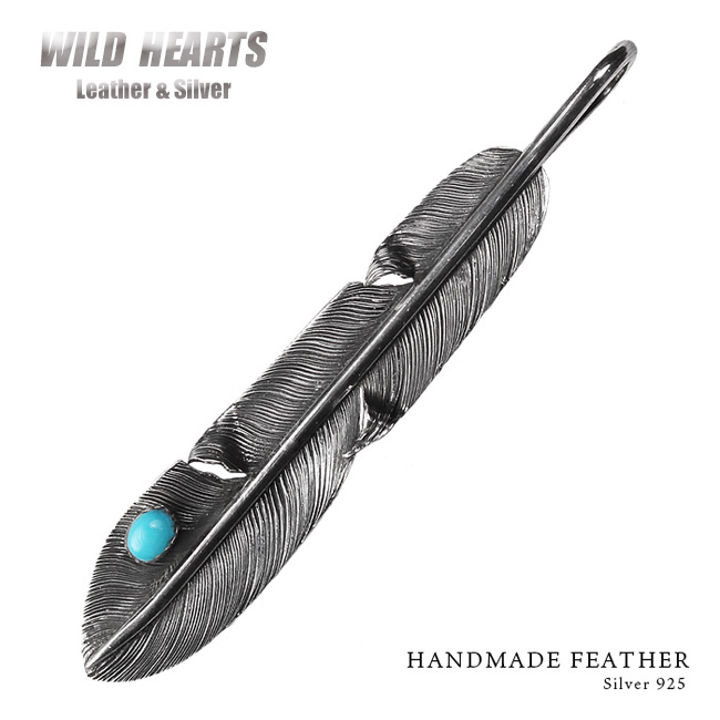 シルバー925の温もりある輝きに、ターコイズの天然石がアクセント。 経年とともに深みを増し、持つ人だけの味わいに育っていきます。 羽根の流れや立体感、先端の丸み、根元の巻き上げ部分に至るまで、全てが職人の感性と経験によって生み出された造形美。ペンダントトップのみの販売です。