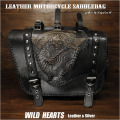 バイク用サドルバッグ シングル スカル死神 カービング ハーレー カスタム Skull Grim Reaper Carved Leather Single Saddlebag Harley-Davidson Sportster iron 883/Forty-Eight Motorcycle WILD HEARTS Leather&Silver (ID sb3483) |
