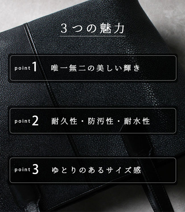 | 製品名 | スティングレイ エイ革 ガルーシャ トートバッグ レザー バッグ 本革 レディース メンズ 男女兼用 |