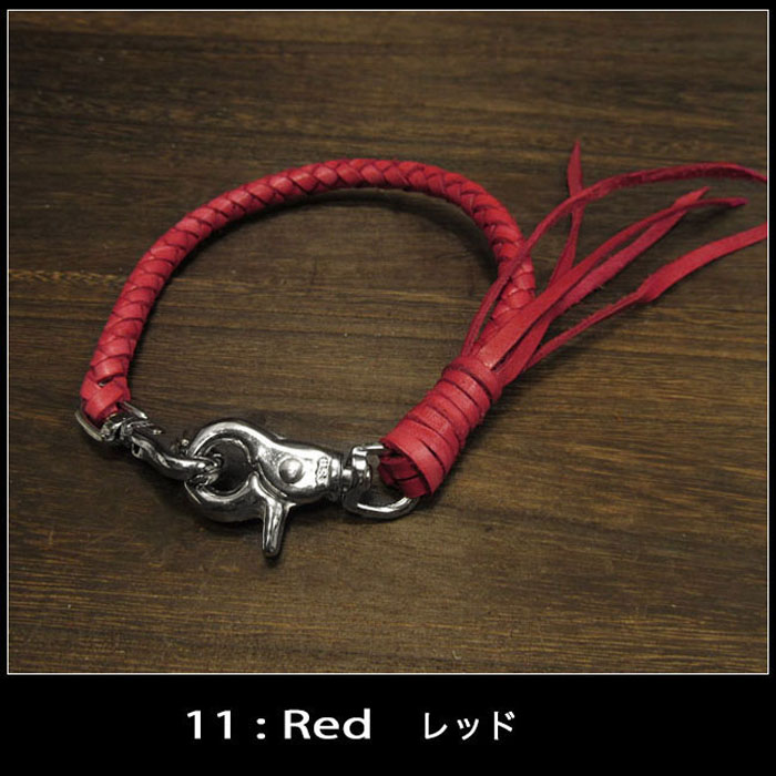 1つ1つ手作業で編み込まれたレザーウォレットチェーンです。合計12色を用意しています。ウォレットやベルトループキーホルダーと合わせたりして腰まわりのオシャレにおすすめです。