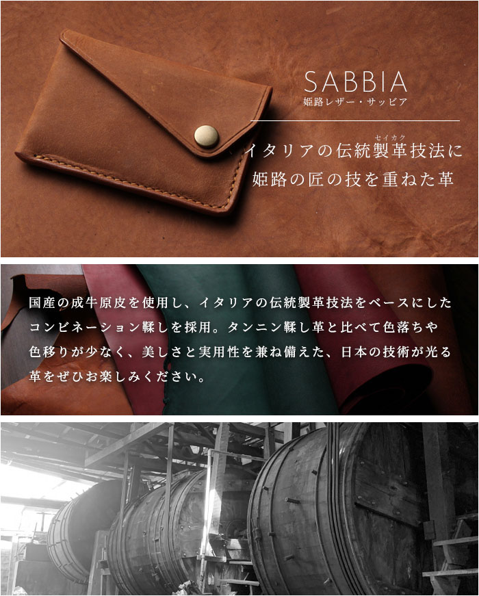 イタリアの伝統製革技法に、姫路の匠の技を掛け合わせた「サッビアレザー」を使用したカードケース。
