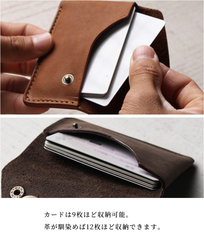 クレジットカードなど一般的な厚みのカードが約9枚収納可能で、使い込むことでさらに収まりが良くなります。