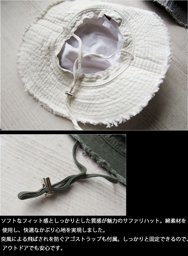 ソフトなフィット感としっかりとした質感が魅力のサファリハット。綿素材を使用し、快適なかぶり心地を実現しました。切りっぱなしデザインがカジュアルでおしゃれです!