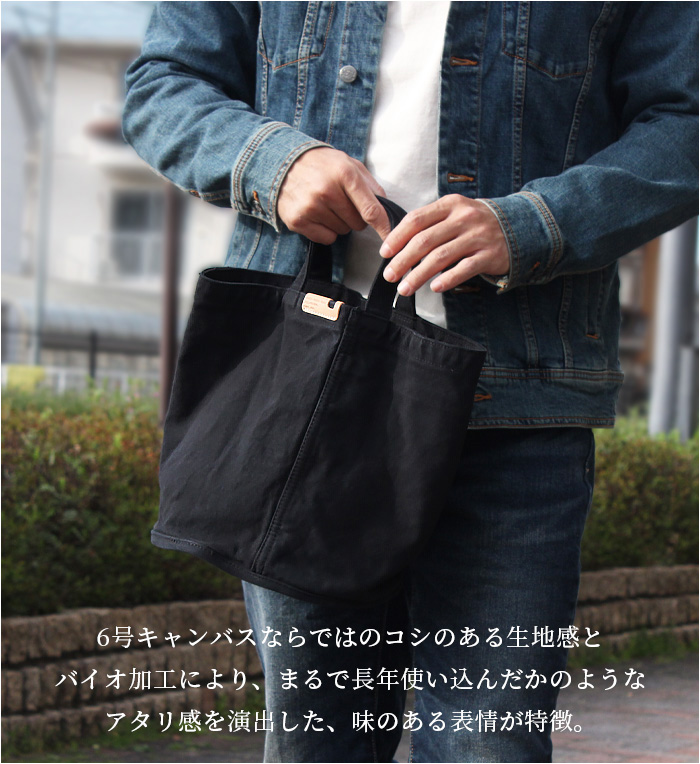 バイオ加工によって生まれる、使い込んだようなアタリと奥行きのある表情が魅力のミニトートです。