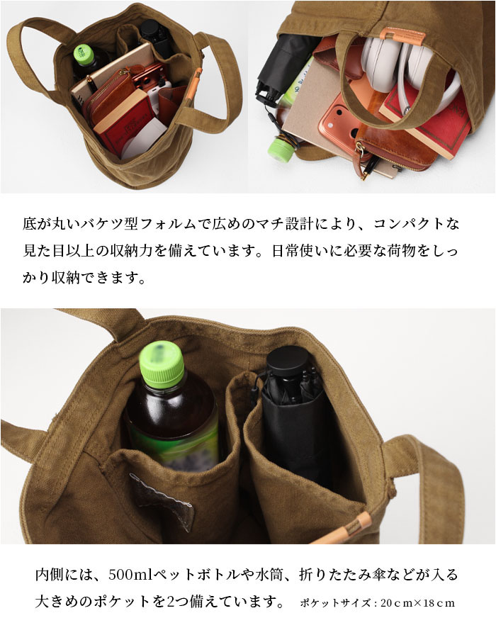 丸底マチ構造により、コンパクトながら見た目以上の収納力を発揮。日常に必要なアイテムを無理なく収められます。