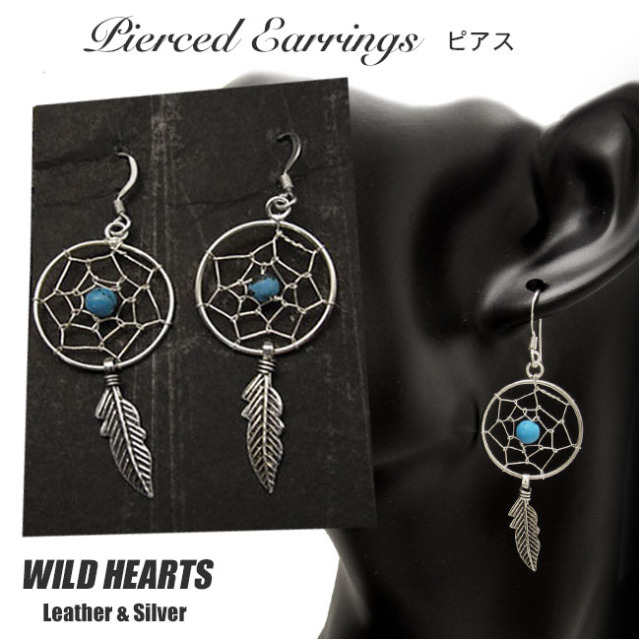アメリカインディアンのオジブワ族に伝わる、輪を基にした手作りの装飾品であるドリームキャッチャーをモチーフにしたピアスです。素材はシルバー925で真ん中のターコイズは人工石のハウライトです。 .