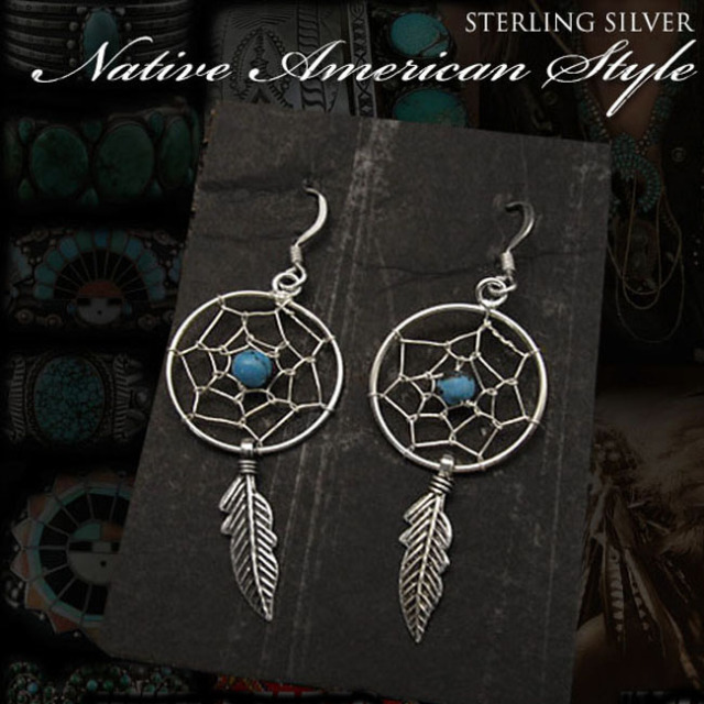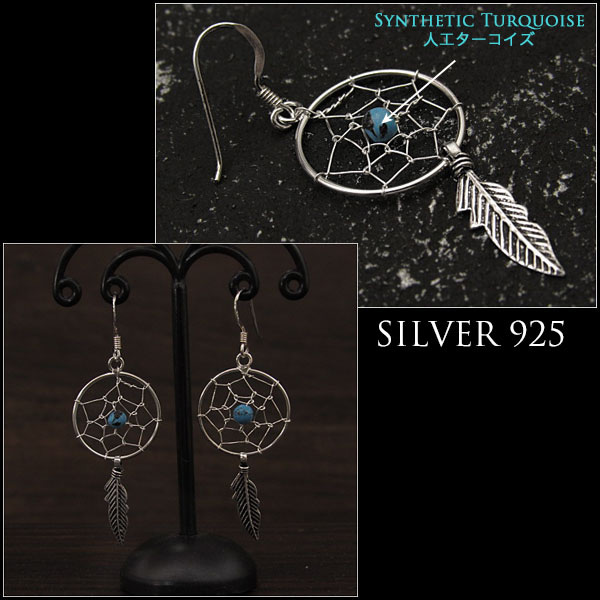 シルバー925 ピアス ドリームキャッチャー インディアンジュエリー ターコイズ Lサイズ