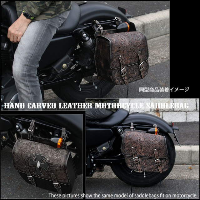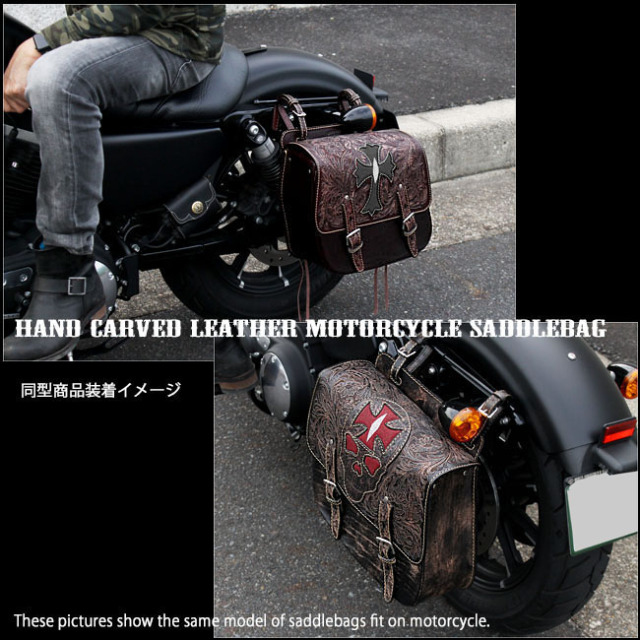 ハーレーやアメリカンバイクに相性抜群のクールな本革サドルバッグ/サイドバッグです。