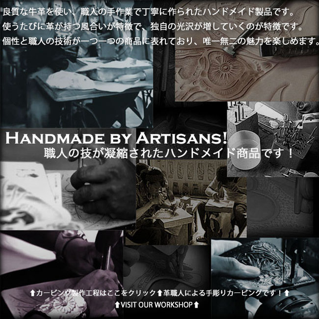革職人により1つ1つ手彫でカービングをあしらい、その上からヴィンテージ風の色染を施しています。手作りならではの風合いが最高です。