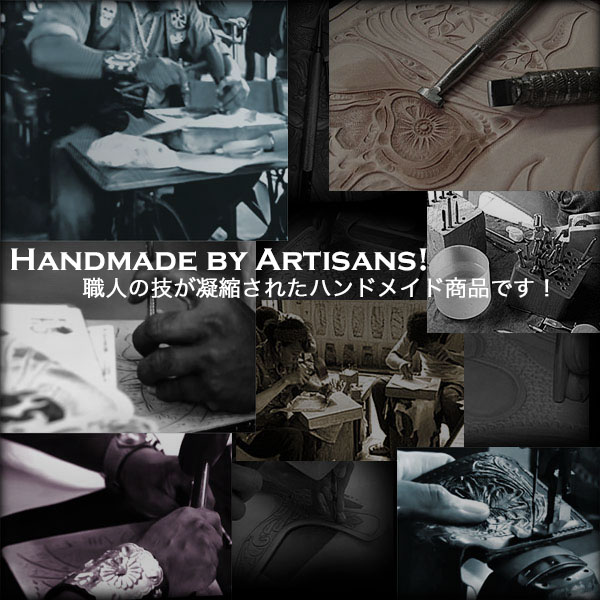 熟練した革職人が、時間と手間をかけ、一点一点手彫りカービングほどこしています。手作りならではの風合いが特徴です。