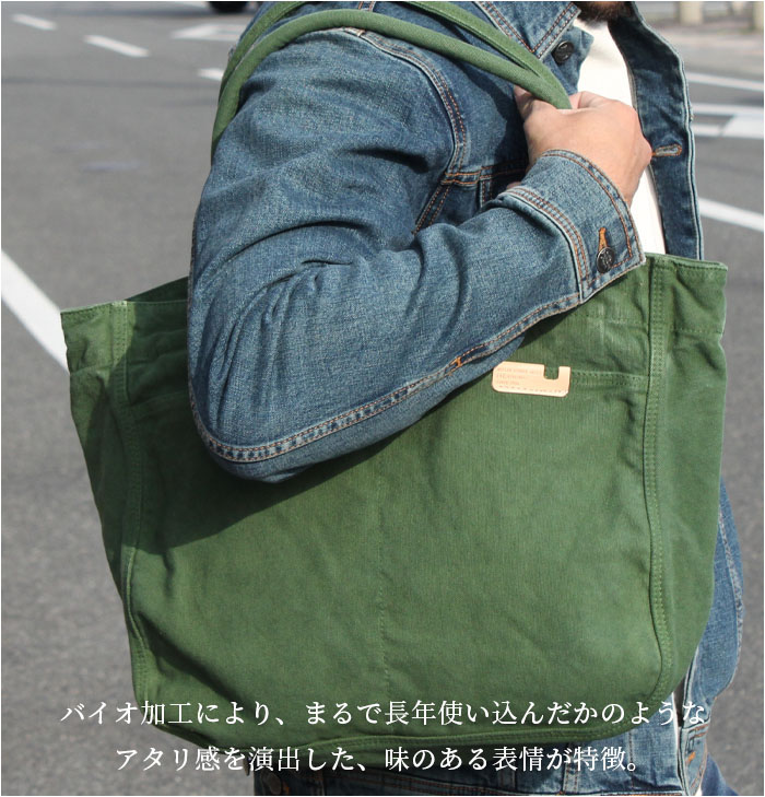 バイオ加工によって、使い込んだようなアタリ感を表現。