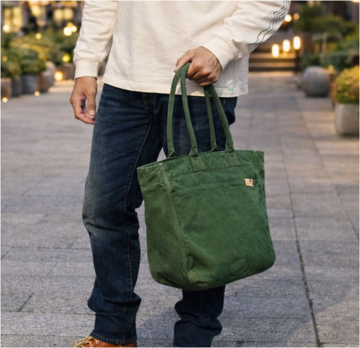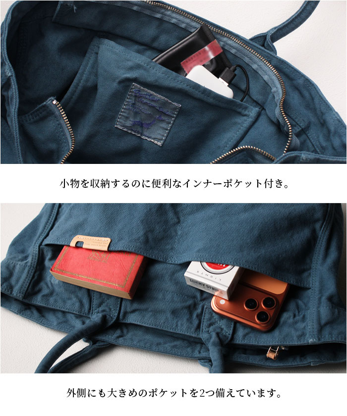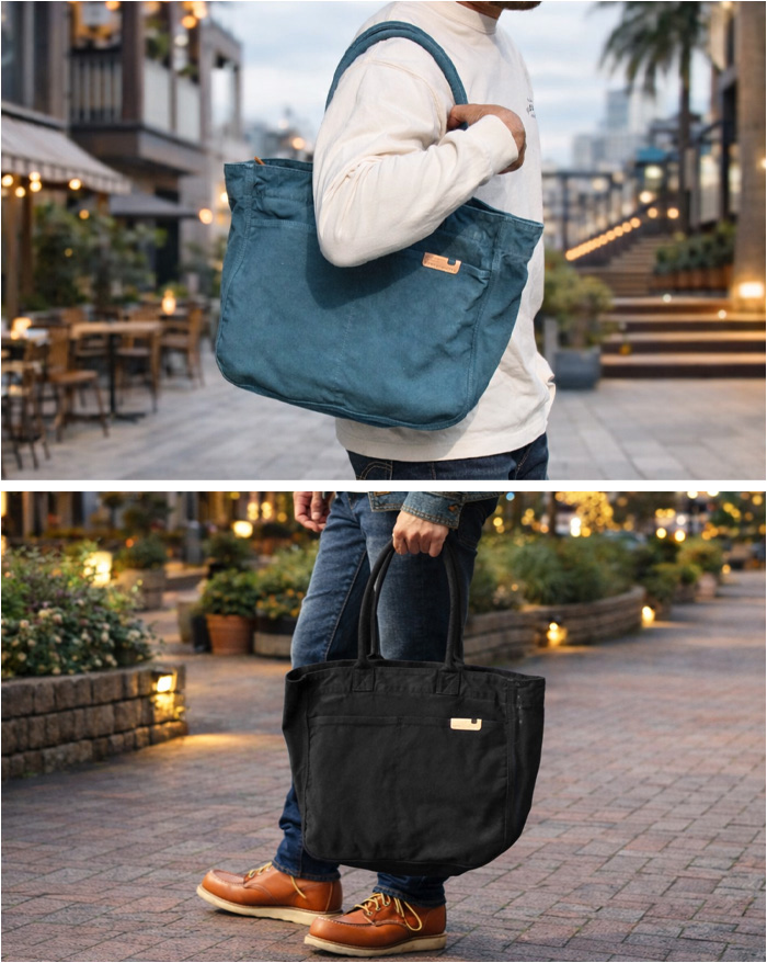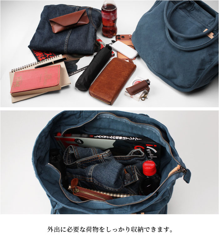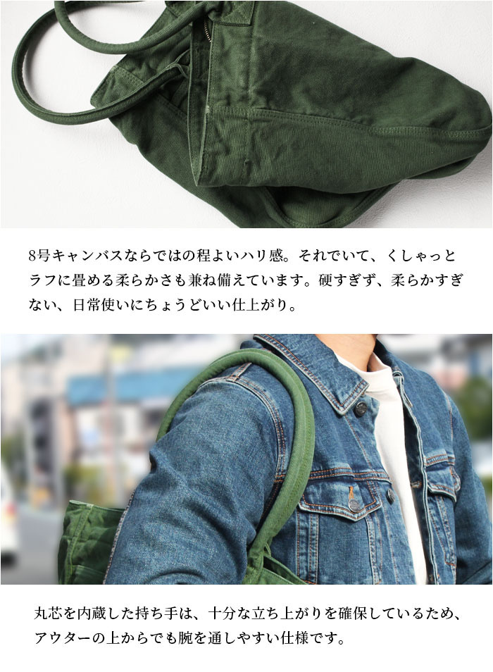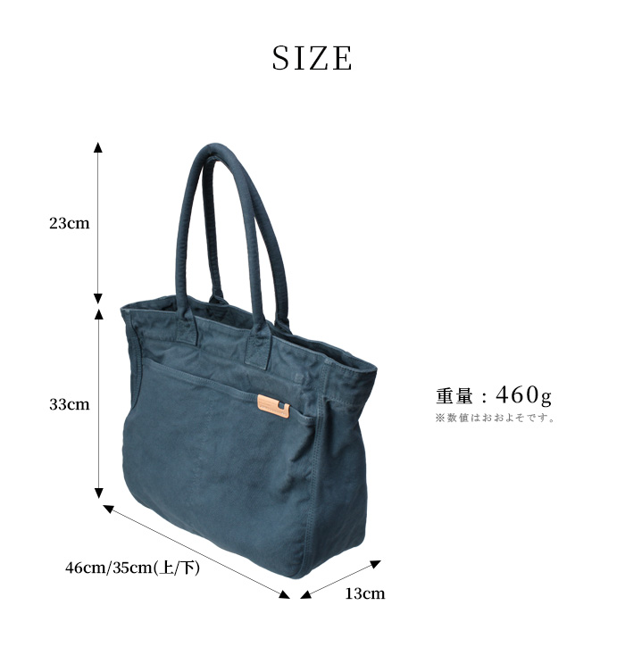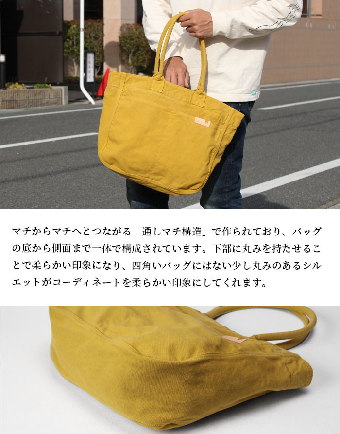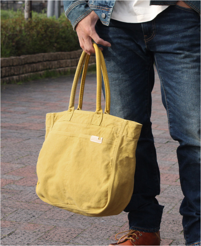 コーディネート全体を優しくまとめてくれる、カジュアルトートバッグです。